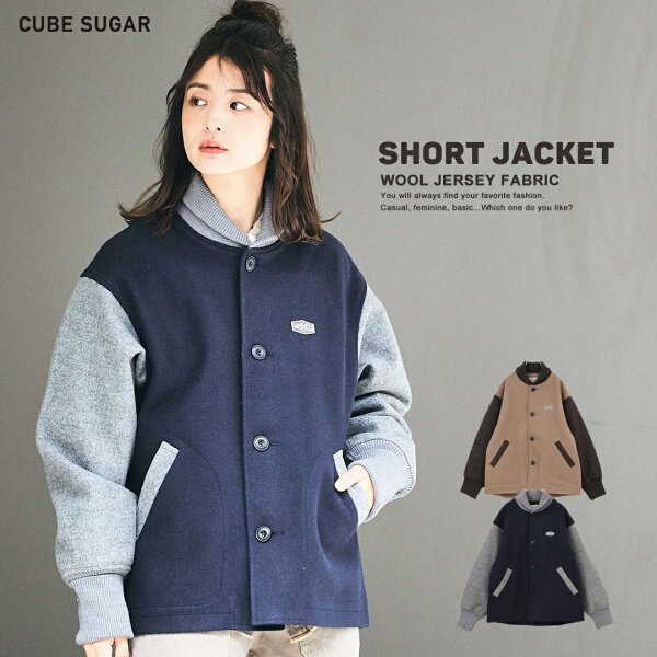 メーカー希望小売価格はメーカー商品タグに基づいて掲載しています この商品のメーカー希望小売価格はこちらからご確認くださいCUBE SUGAR ウールジャージ リブ衿 ショートジャケット(2色) トラッドとスポーティのバランスが絶妙に可愛い。
